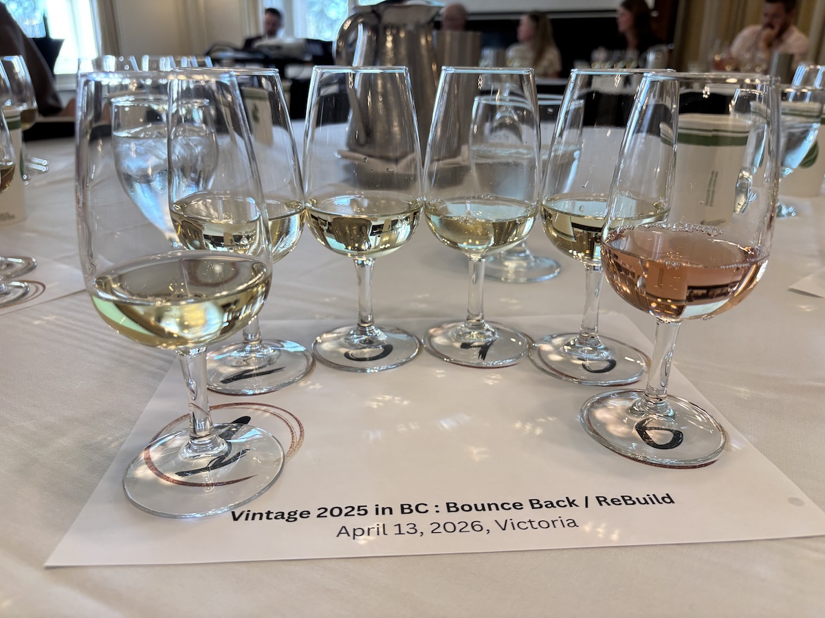 Yesterday I attended a trade event in Victoria titled Vintage 2025 in B.C. – Bounce Back / Rebuild that was hosted by Way West Wines and moderated by Treve Ring. The wineries and their representatives in attendance were: Charlie Baessler, Corcelettes Winery Richard Charnock, JoieFarm Winery Max Legris, Sage Hayward Wines Alison Moyes, Solvero Vineyards…