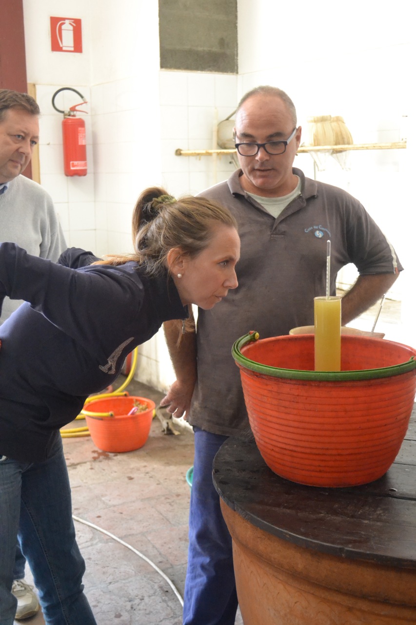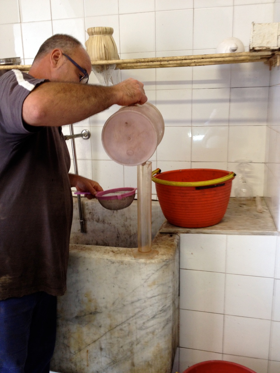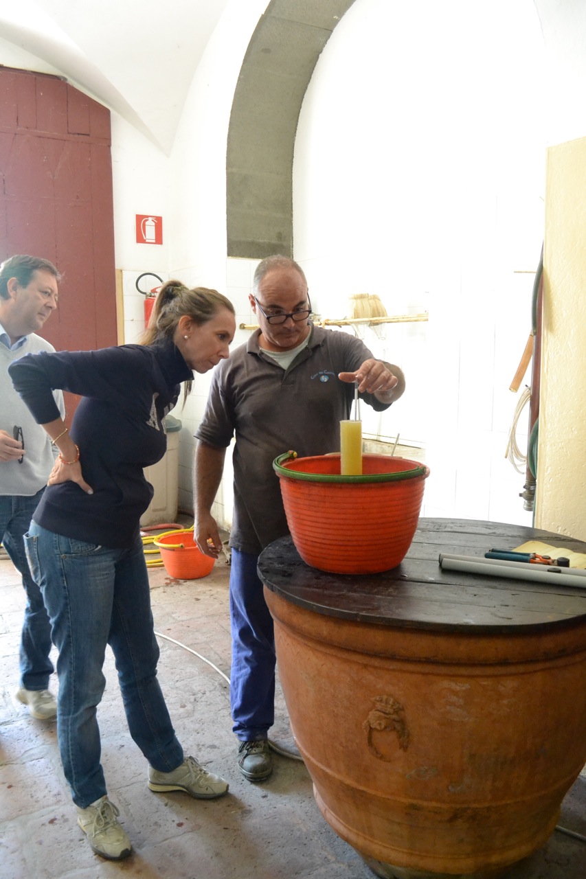 Although the gracious host, Tamburini was all business when we came to the place in the winery where the grapes were being tested. The sugar level would be the deciding factor for timing the harvest of the grapes and being September it could be any day.