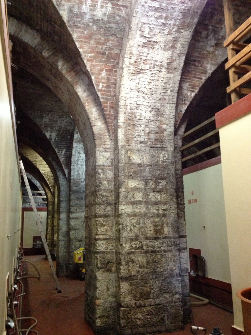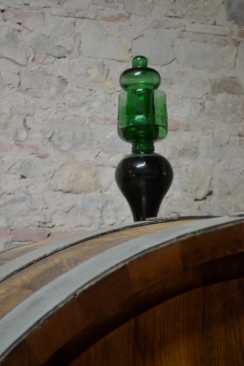 The architecture of this particular winery is quite unique with two of the three levels underground giving a controlled environment. I noticed as we toured the winery that the oak barrels had a tube on top and was told that this was to ensure that the barrels remained full and were a way to check that no air was inside. A new invention? Actually an invention by Leonardo di Vinci.