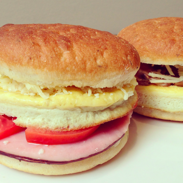 Breakfast sandwiches: Choose between Ham & Cheese and Mushroom & Sweet Cheese, both served with scrambled eggs on fresh-baked focaccia. A delicious answer to a popular customer request!