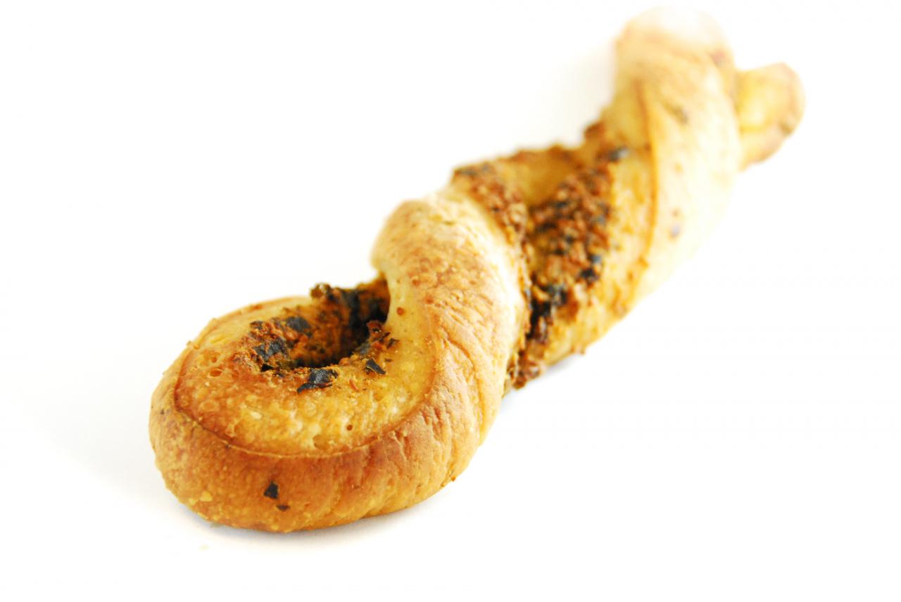 Twisted Bread – twisted sourdough bread sprinkled with kale pesto and Parmesan