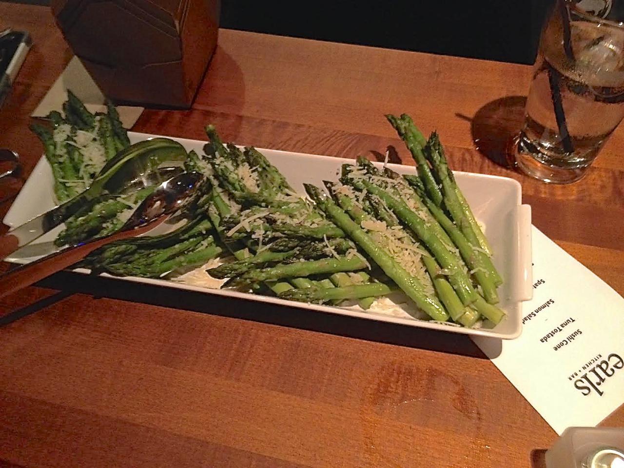 Platters tender sliced Spring Creek Ranch beef accompanied by green asparagus topped with fresh parmesan cheese were delicious.