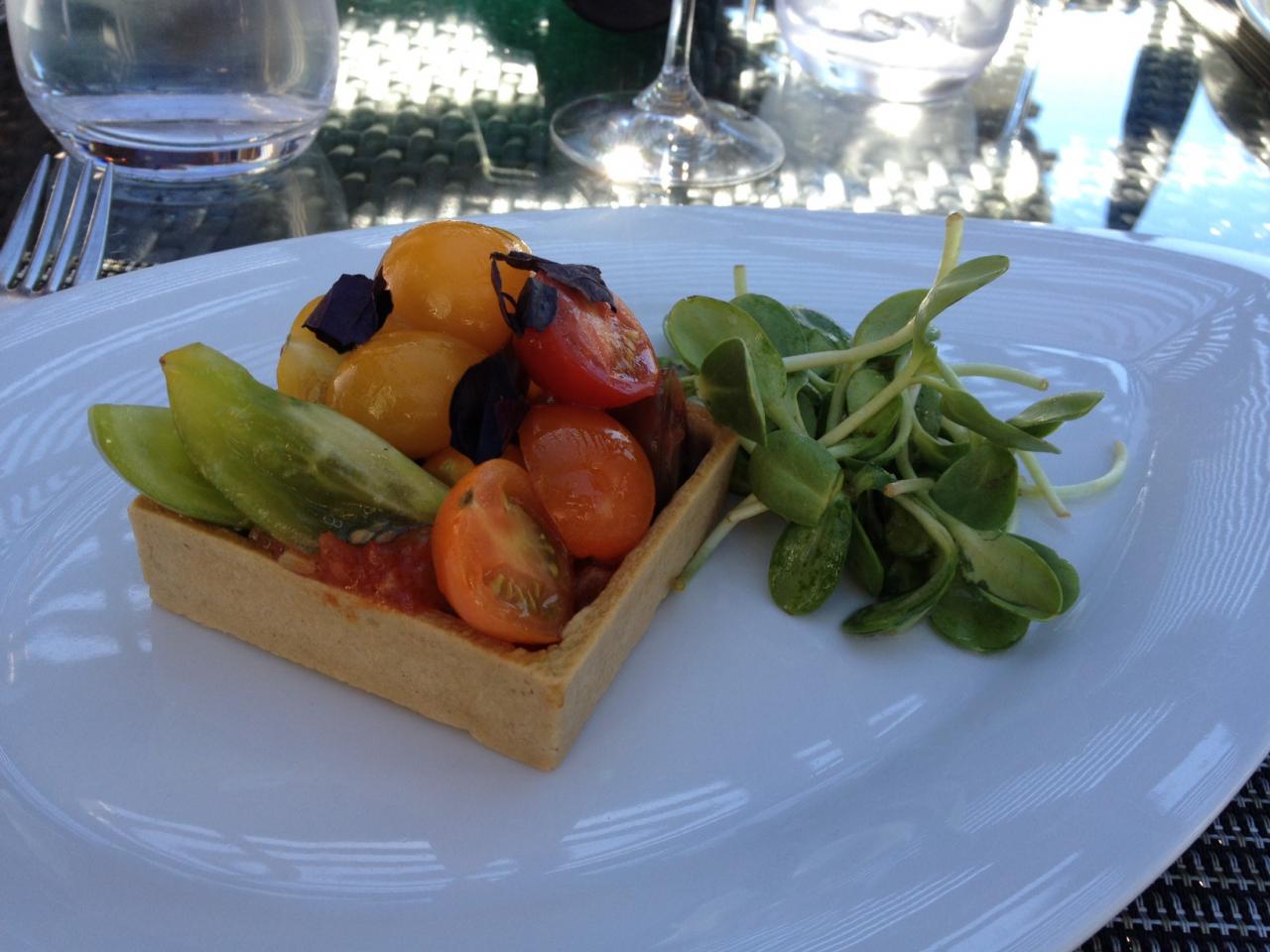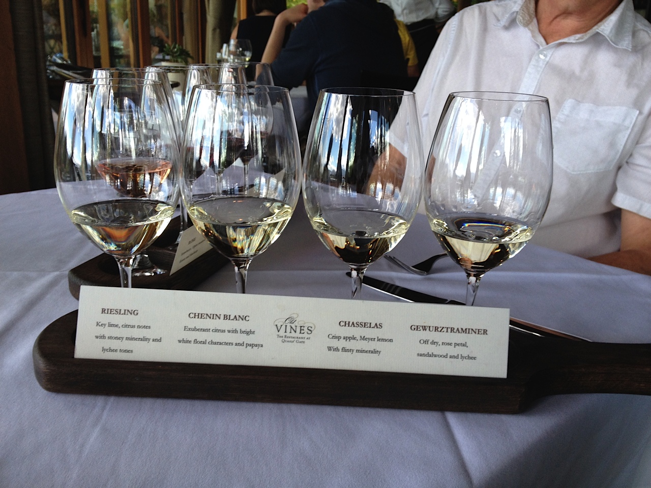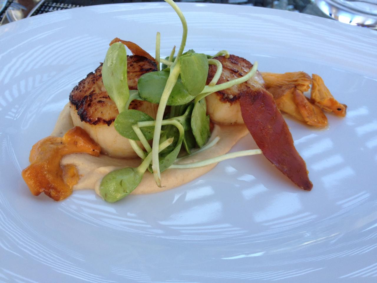 Lunch was incredibly good and most tables provide some view. Sharing was the order of the day and we enjoyed a Poached Pear Salad, Heritage tomato tart and a dish of oh so succulent scallops. We paired our lunch, first with a sample glass of each of the Rieslings and then settling on the Reserve which was delicious.