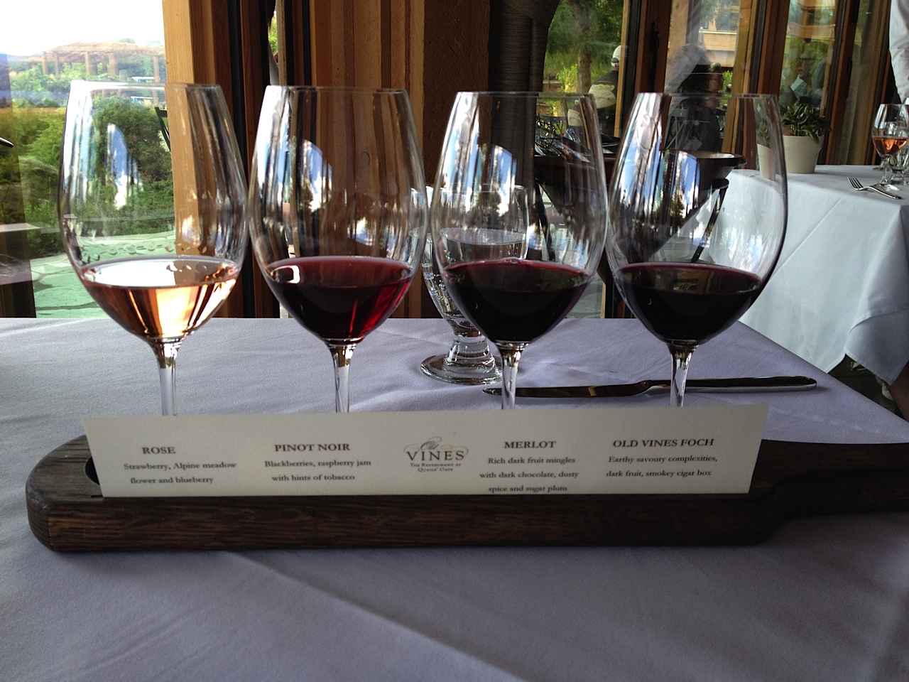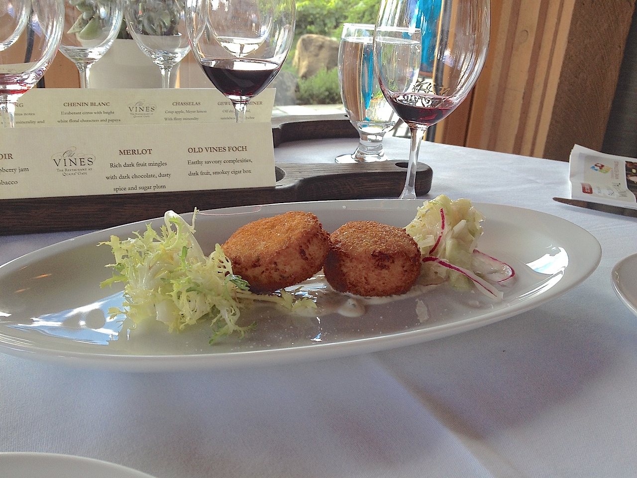 The Old Vines Restaurant is an elegant space, tables set with crisp white tablecloths, fabulous vistas with both indoor and outdoor seating. An ever changing seasonal menu is sure to satisfy the most discriminating diner. I especially enjoyed the opportunity to have a “flight” of wine rather than choosing just one wine by the glass.
