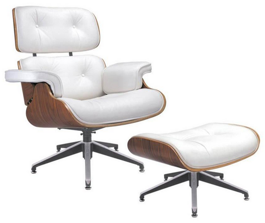 Blur the lines between old and new by combining vivacious retro flair with a sleek, modern aesthetic. The rounded shape of this classic 50s-era chair-and-ottoman combo pairs beautifully with the end table’s crisp, futuristic lines for a playful look that harbours nostalgic charm.