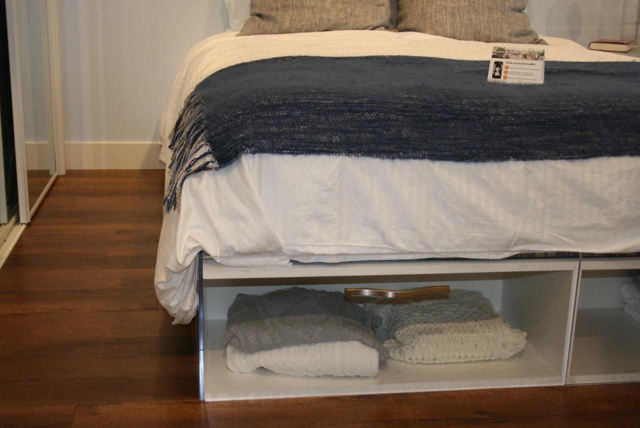 Have you ever felt that your living space was too small? What if you look beyond the one plane of just floor space? Raise one section of floor to create another level and pull out space below. Utilize otherwise wasted space under a bed for storage (and no need to vacuum under it – bonus). What if there is no space for a dresser in a bedroom? Why not lots of cupboard space on the walls, just like in a kitchen?