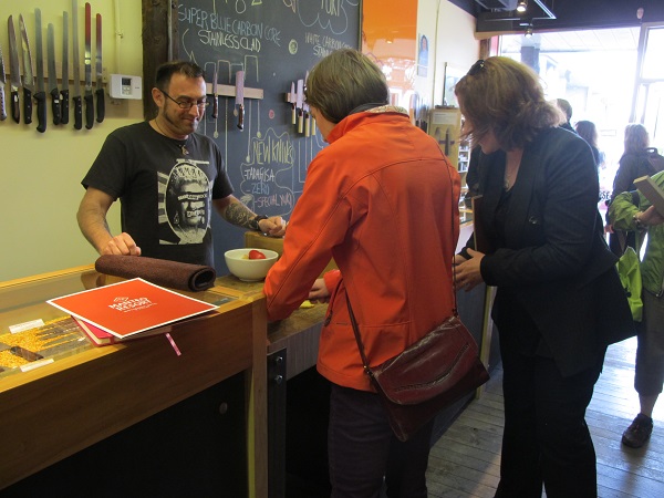 Over the years, there have been outstanding sessions. Think delectable long table dinners in stunning settings or wine blending led by the principles of a winery. One year we did a hands on lesson in canning apple slices led by the nutritionist and team of BC Tree Fruits in the commercial kitchens of the Delta Grand Okanagan. How about a demonstration on knife techniques and collectors’ knives by Knifewear? A bicycle tour learning all about bees at Arlo’s Honey, lavender at Okanagan Lavendar Farm, then an al fresco wood-fired pizza lunch at Sunshine Farms. I can hardly wait to see what we’ll do this year!