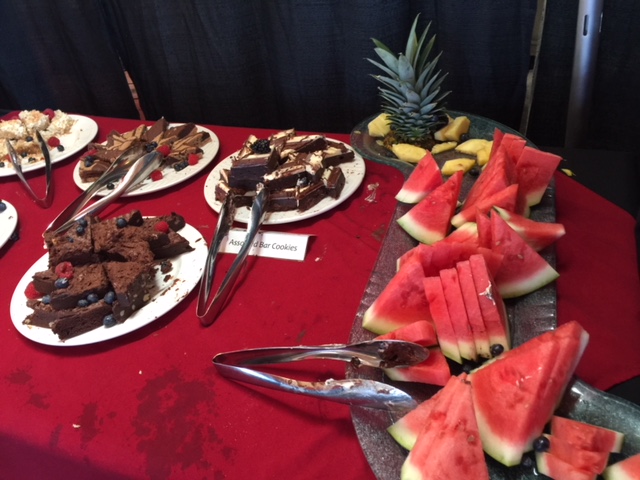 Upon returning to Whistler Mountain, we did the Summertime Feast – food was wonderful. Lots of choices: ribs, salmon, chicken, shrimp, prime rib, hot dogs, mac and cheese and may accompanying salads and vegetables. Then a large assortment of desserts. We felt it was a great meal with stunning views, especially of the sunset.