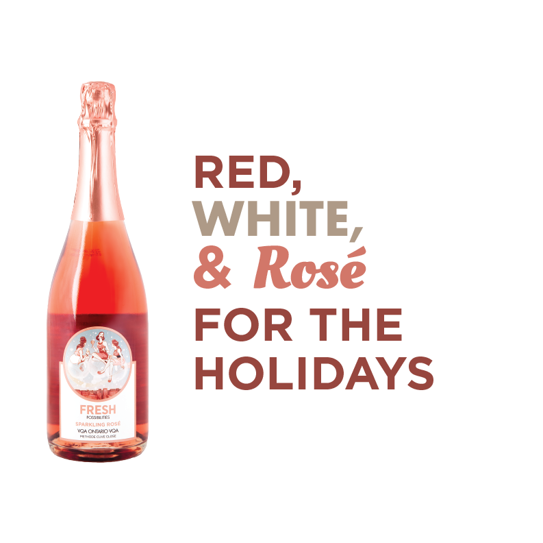 The FRESH Sparkling Rosé wine does Niagara proud with rich characteristics of ripe red berry fruits. Sweet or savory, this versatile rosé goes with whatever your eating!
