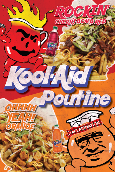 WEIRD, WILD and WACKY POUTINE STYLE! OHHHH Yeah! Smoke’s Poutinerie has once again taken the poutine game to a whole new level with the ultra-unique and never before tasted Kool-Aid infused Poutine dishes! Break through the metaphorical brick wall and try something new with Smoke and Kool-Aid man today!