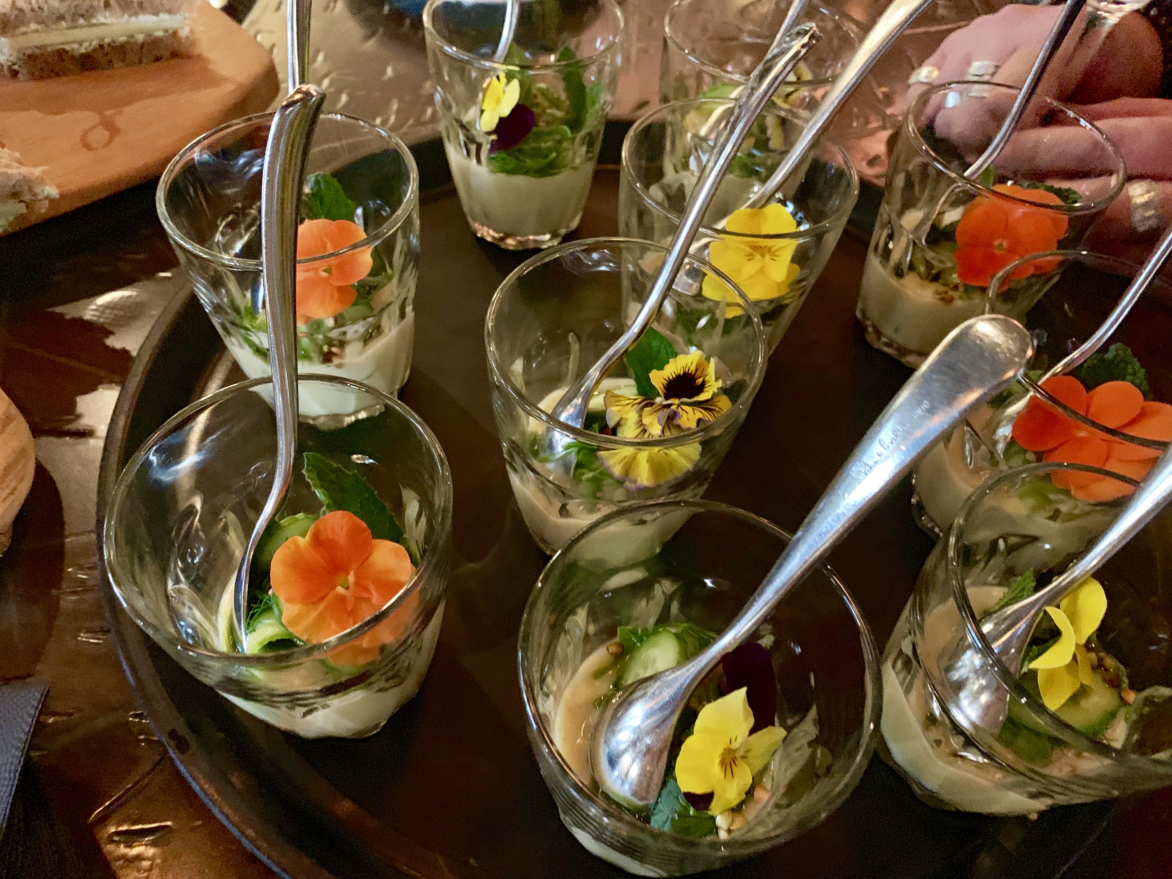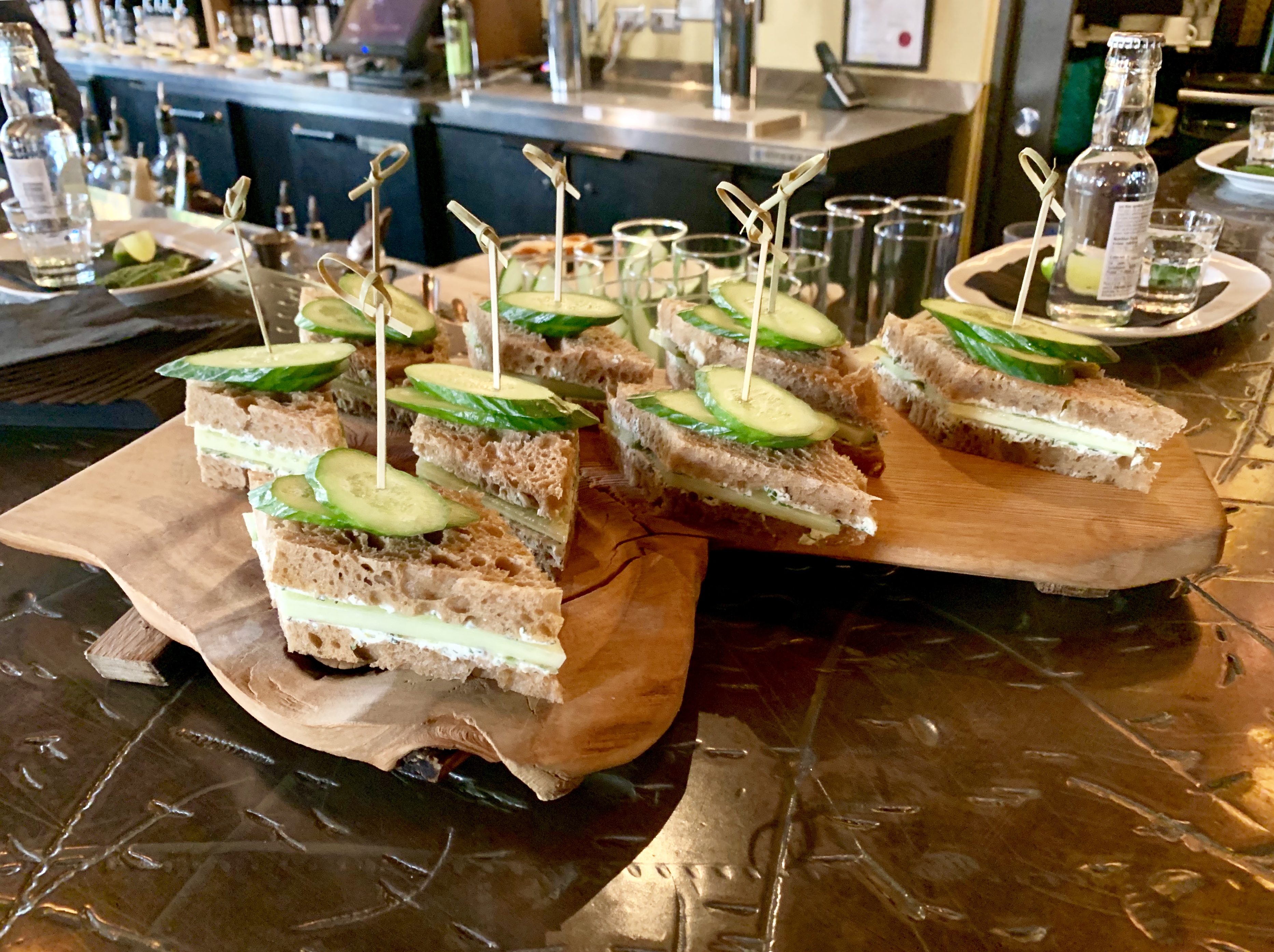 To accompany the cocktails at the launch, the snacks created by the kitchen crew were deceptively simple and paired perfectly with the flavour profiles. Fresh shucked oysters on the shell were served with two different mignonettes – I was particularly fond of the lime, cucumber and mint selection. The other pairings were elegant cucumber sandwiches suitable for high tea and delicate white gazpacho topped with a pansy.
