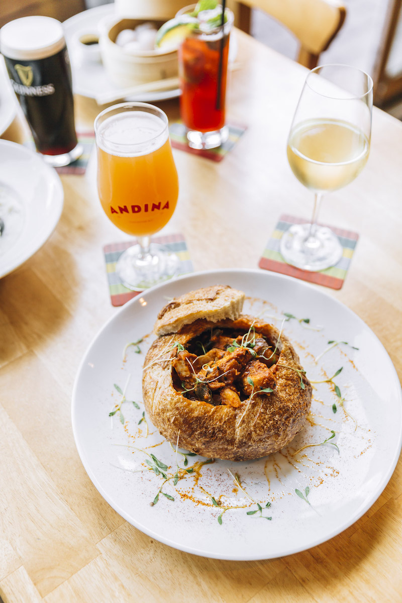 The bold flavours of Indian cuisine is a natural match to the large array of draft beers, wine and cocktails available at mahony. Chef Vikram in collaboration with mahony Executive Chef Liam Dougall, has designed a new menu with beloved classics along with spiced up “pub” fare. Crafted with local ingredients, traditional items include a 100% all-natural beef patty served on a Terra Breads brioche bun or Ocean Wise Pacific cod in a Guinness batter both with handcut fries. Uniquely Vikram inspired dishes include a fresh interpretation of pizza with handmade naan bread crust available in 4 different styles, a Vikram “bunny” chow served in a Terra Breads sourdough bread bowl, and a gluten free paneer pakora made with chickpea flour served with mint and onion chutney.