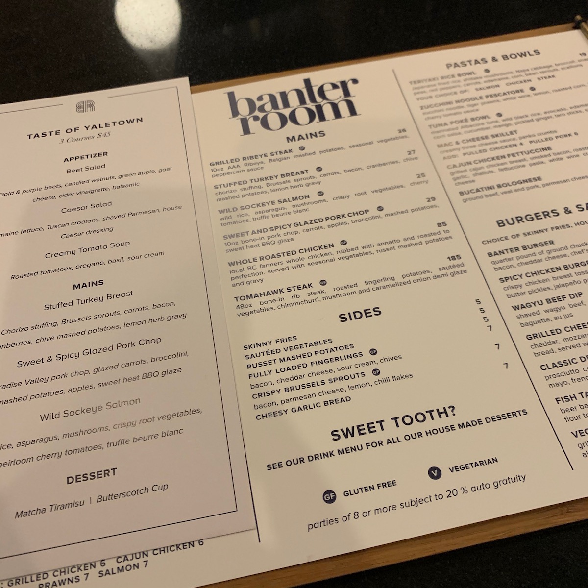 First we started at The Banter Room. This is a fun loving place with really good casual food. Nice relaxed atmosphere with friendly staff. Grab a seat on one of the sofas and you immediately start to relax. The main point of Taste of Yaletown and their new #MyHappyHour is to have a good time and eat well. Here then is what we enjoyed at The Banter Room.