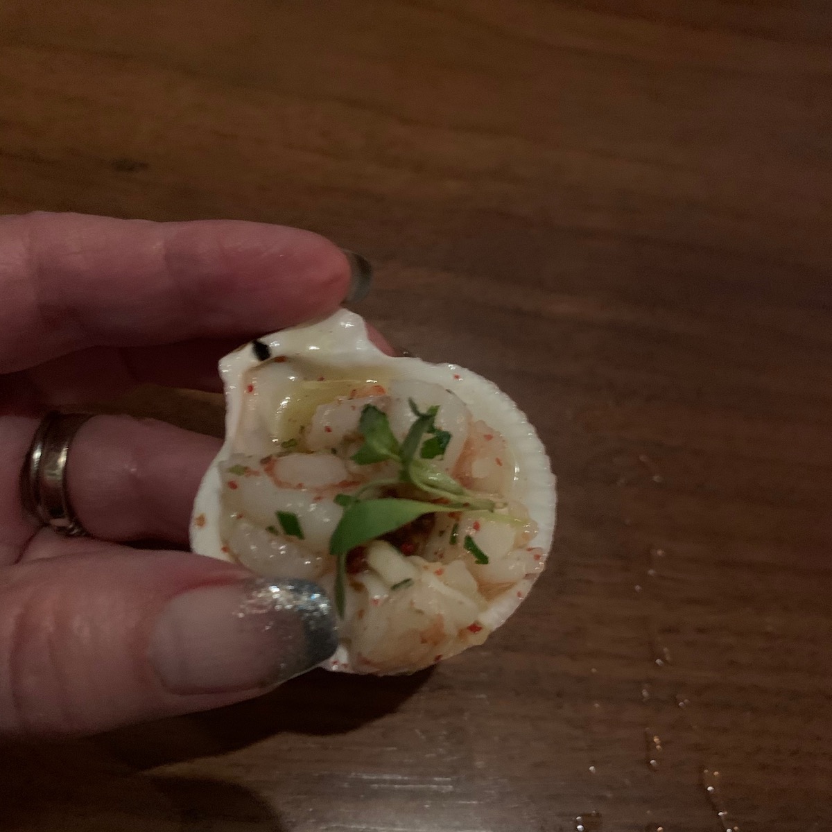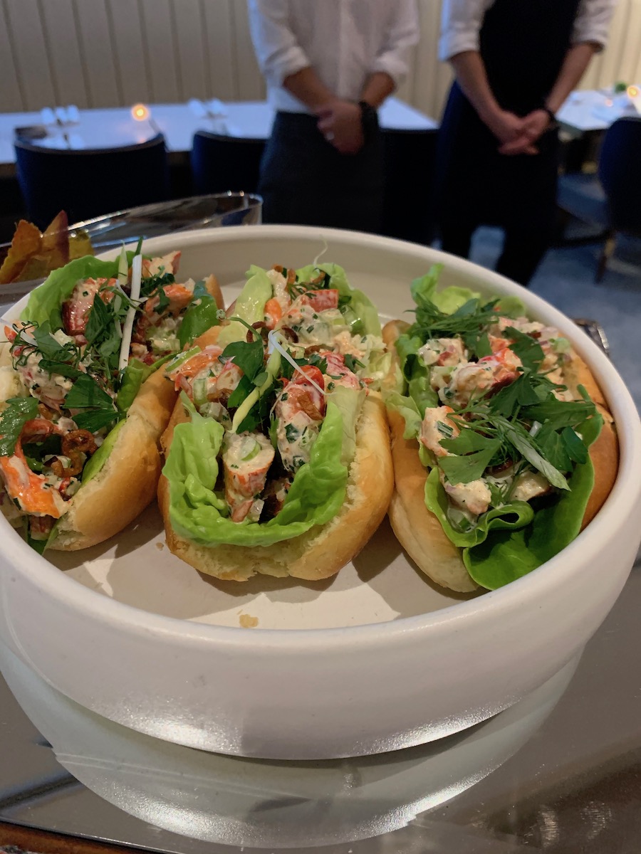 A massive space with a top rated restaurant with the most envious of seafood bars. But for this night we were destined for the lounge. A very happening place with subdued lighting and a sophisticated vibe. We were treated to a cocktail demo by their mixologist. A delicious concoction made with Sapphire Gin and a touch of Sake called Crouching Tiger. Served in a coupé glass, so very retro. Drinks flowed and snacks appeared. The beef tartar was luscious. Scallop or Prawn ceviche served in tiny scallop shells that you downed like an oyster slider. Very tasty. More crab cakes! I love crab cakes when they are full of crab like these ones and the ones from H Tasting Lounge. I could eat them for breakfast and let me tell you these are the real deal definitely not potato cakes like you get in other places. Everthing in a Marriott is gong to be first class, expect it, that is the way it is!