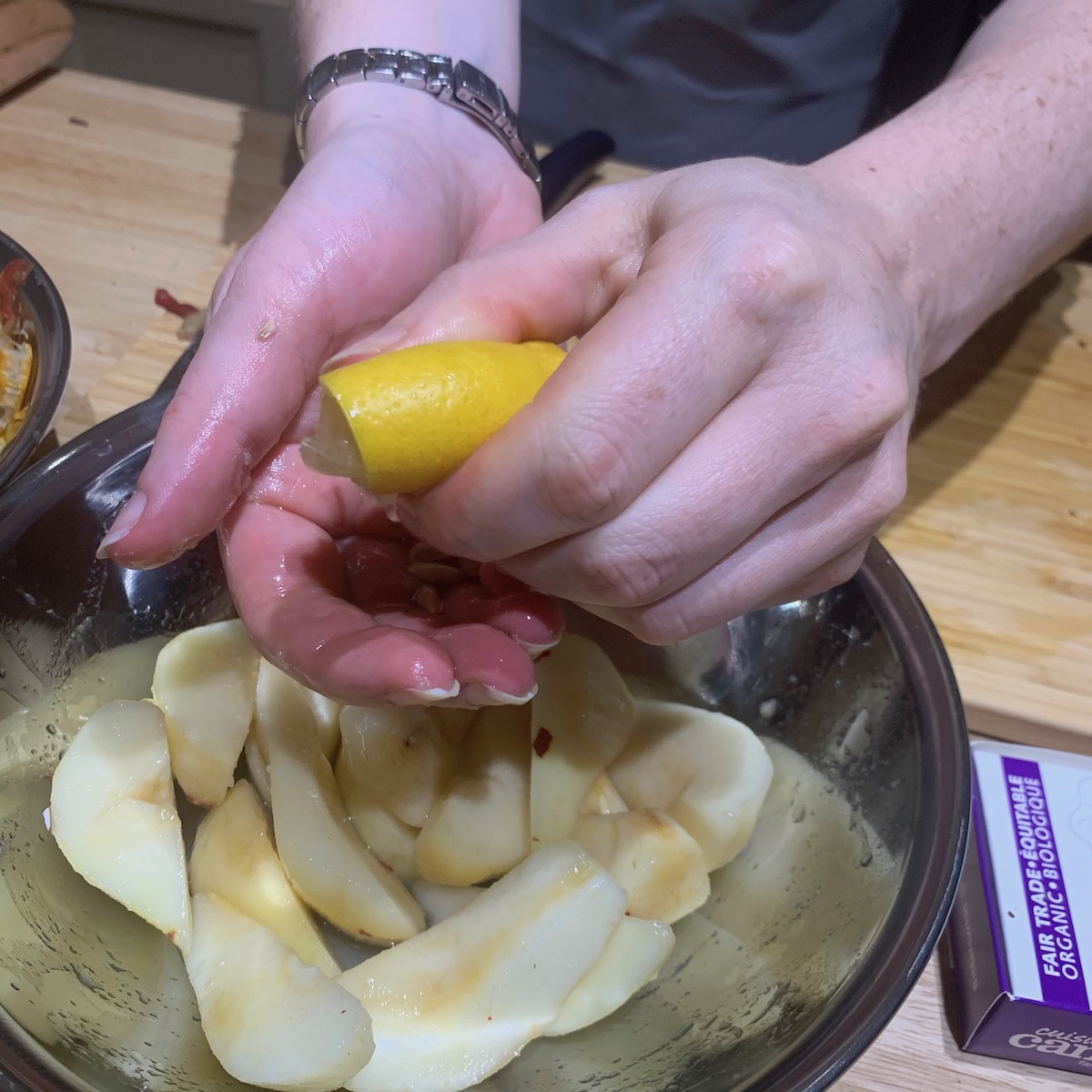 During the evening, which began at 4:30, with a cup of Spiced Apple Hot Toddy and conversation. The home owner, Paula Mohammed, explained a bit about the evening and also shared some fascinating personal family history with us. Paula is a descendant of a Māori chef and the child of Pakistani Canadian parents. With a diverse background she has always enjoyed a love of cooking. Her family traditionally cooks together and this love of cooking with family and friends inspired In My Kitchen.