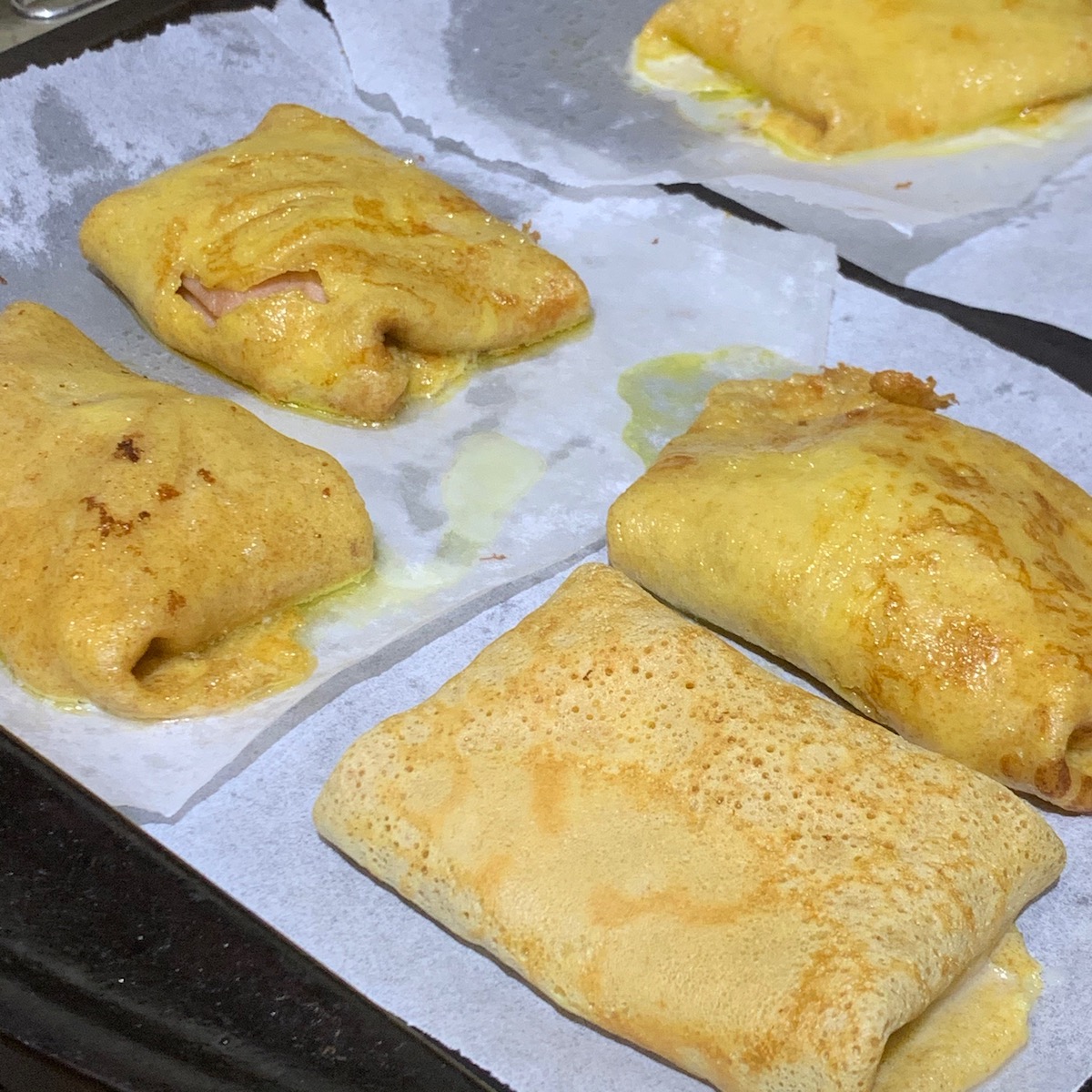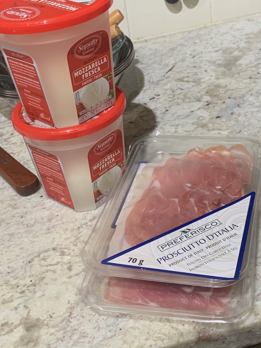 Some things were pre-prepped like the crepe batter. I was surprised and intrigued by not only the use of olive oil but how much oil was in the frying pan for the crepes. Much different than when done on a commercial griddle. These were savoury crepes later filled with prosciutto slices, fresh mozzarella and pear slices.