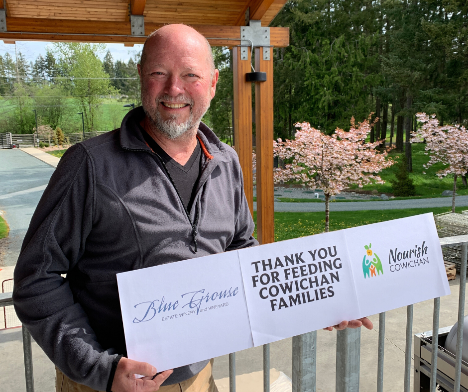 Results are in: Blue Grouse Estate Winery on Vancouver Island announces a donation of $10,000 to Nourish Cowichan Society, a charitable organization helping feed families in need.