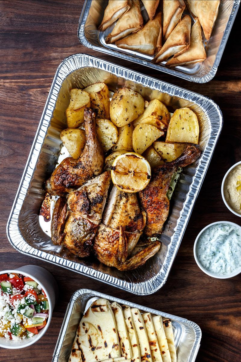 Enjoy the authentic classics without the prep. This spread is sure to impress with a tender and crispy-skinned Grilled Greek Free Range Chicken that’s paired with the very necessary Lemon and Garlic Potatoes, Greek Salad, Spanakopita, Hummus, Tzatziki and Pita. Hungry for more? Complete the experience with a side of fall-off-the-bone Greek Style Baby Back Ribs.