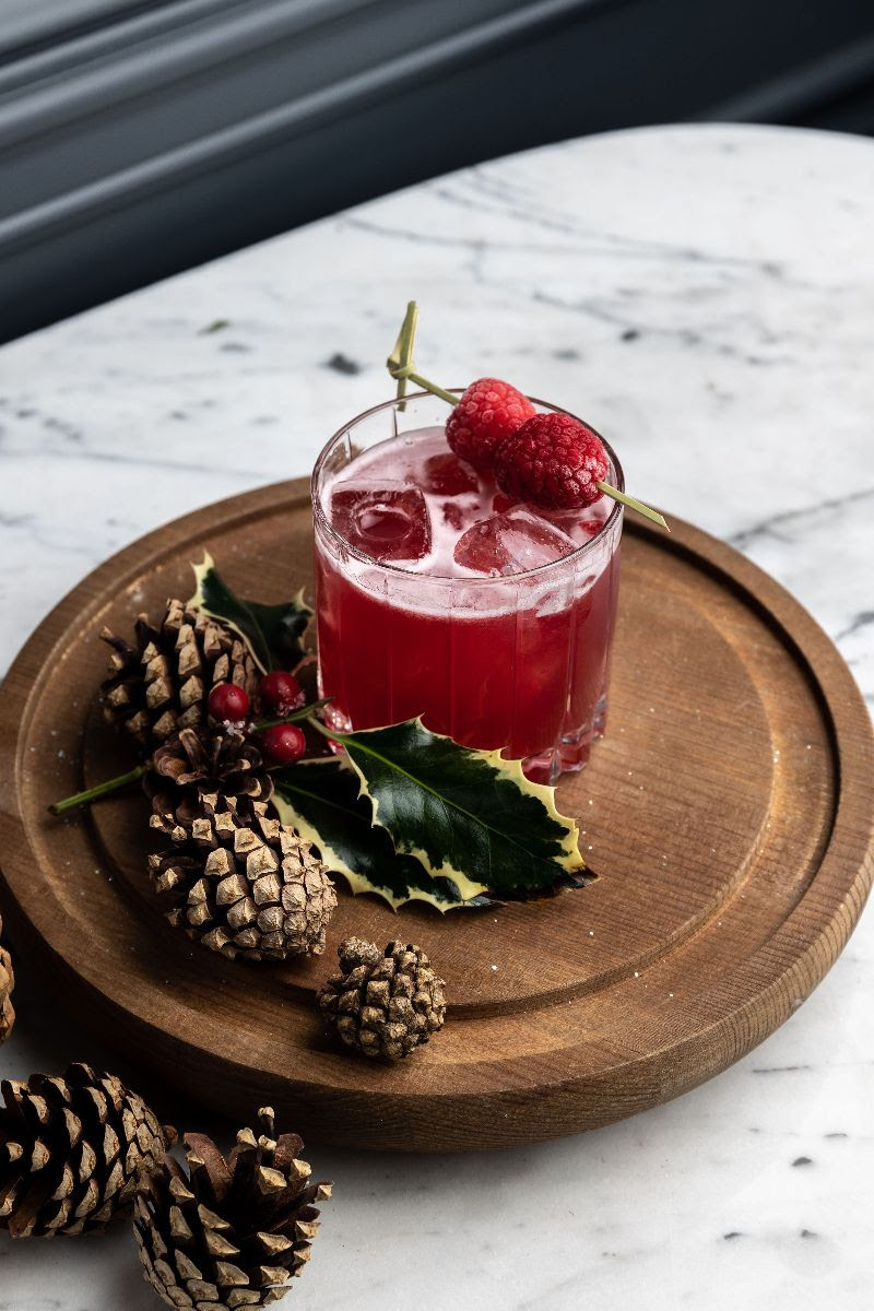Bar Manager, Peter Johanson presents two festive creations that are equal parts creative and delicious. Johanson mixes Creme de Cacao, Gautier VS Cognac, Chambord and oat milk to create his Raspberry Ripple Martini, which is deliciously dessertlike yet vegan and not too heavy.