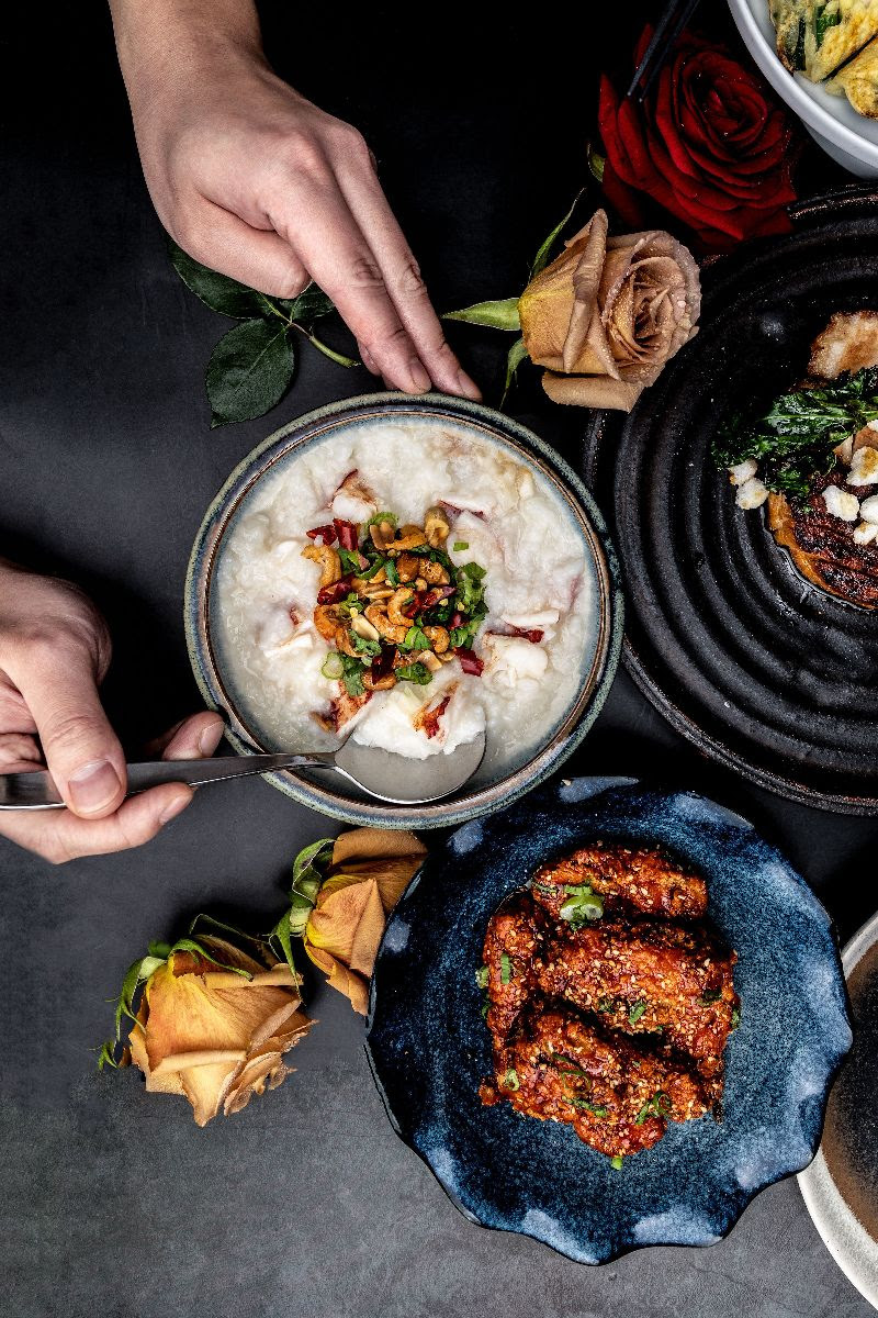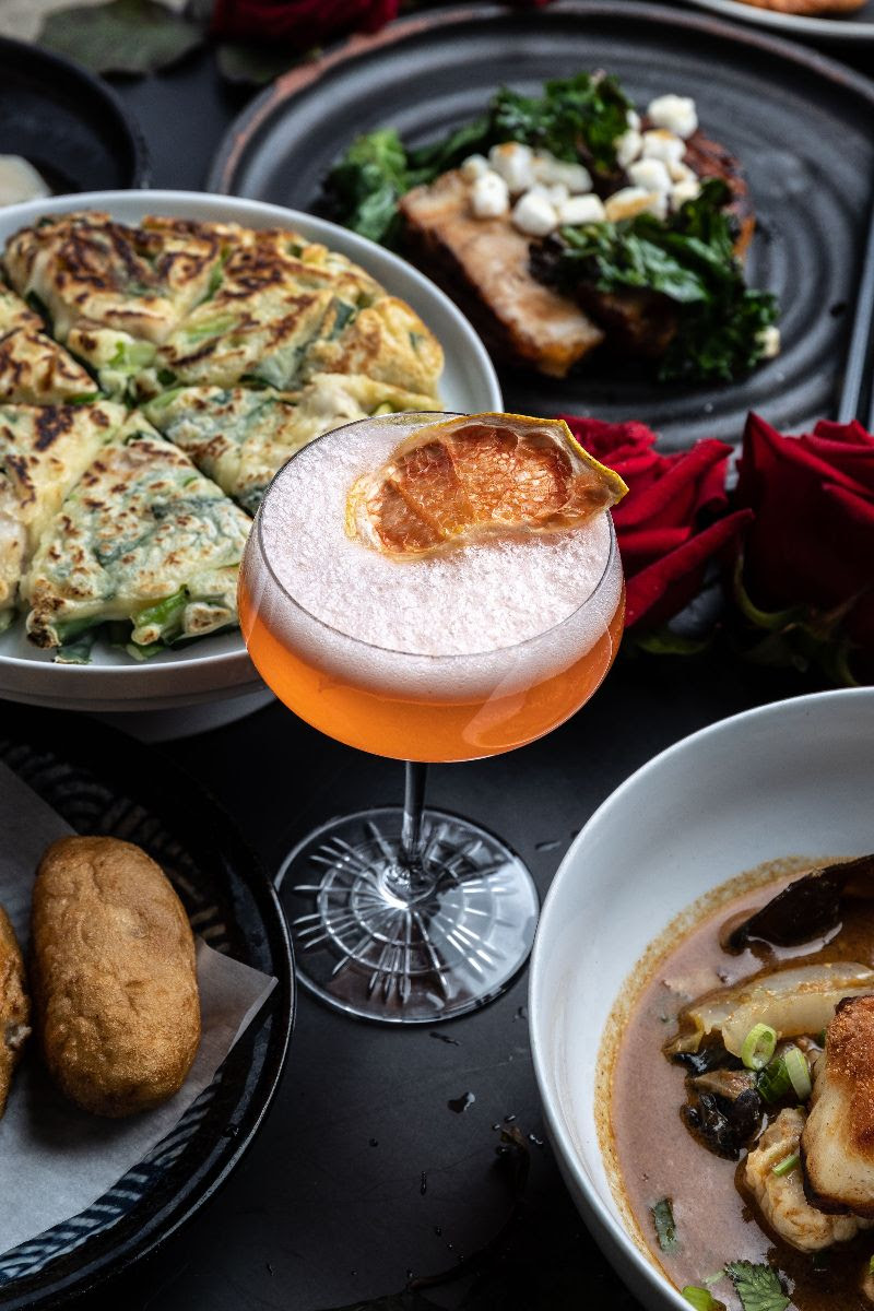Menu highlights include starter options of Hokkaido Scallop Crudo with ponzu, grape, cara cara orange and dill, a perfectly piquant Korean Gochujang Fried Chicken is another option. An elevated congee with steamed lobster and Szechuan chili peanuts is a perfect warming winter option. A Grilled Pork Belly takes center stage with a sweet and tangy pickled umeboshi sauce made of Japanese plums. Chef’s tiramisu made of bold Vietnamese coffee makes for a memorable finish to this menu designed for two to share.