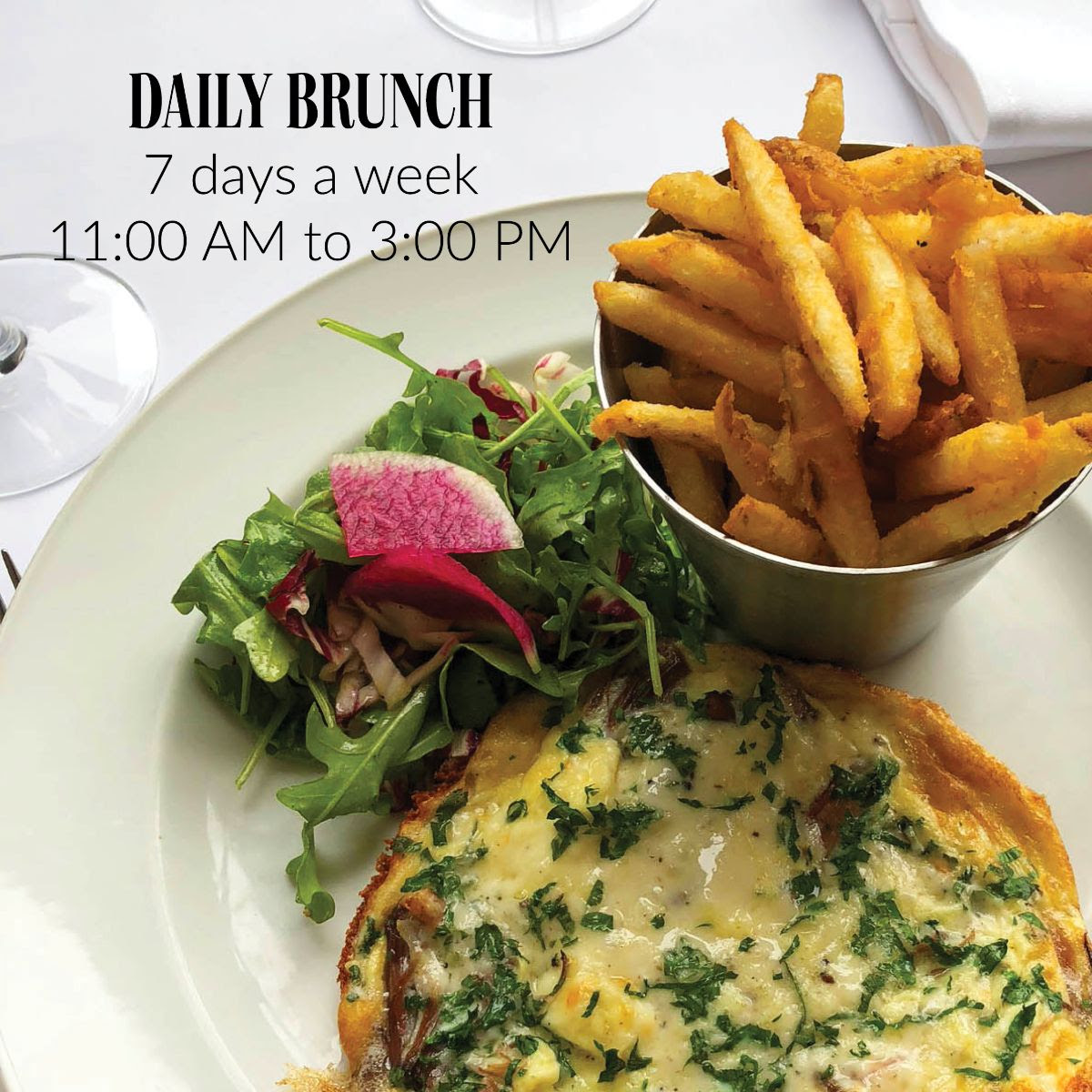 Brunch & Lunch served DAILY 11:00am-3:00pm.
