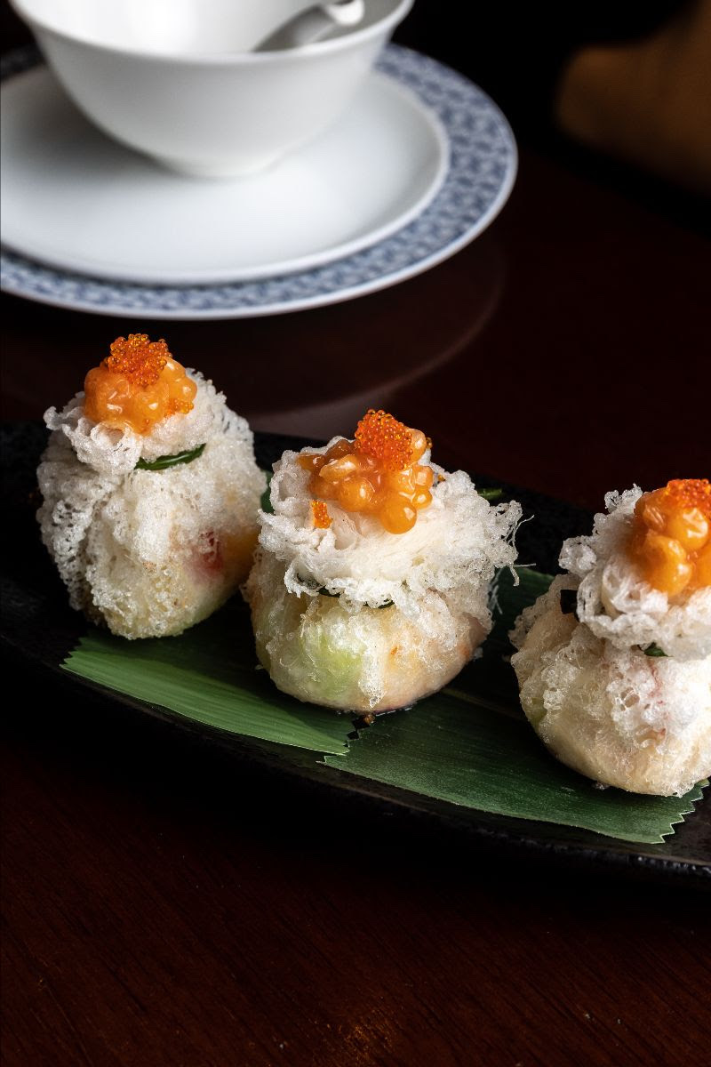 Highlights from the menu include the Fruits and Spot Prawn, a crispy fried pocket of rice wafer loaded with fresh fruits and prawns. A topping of tobikko and chum salmon caviar is added here to balance the sweet elements of the dish. The dish is inspired by the family favourite and kid-friendly fruit spring rolls popular in Chinese restaurants. Sweet prawns are expertly paired with pickled chili and garlic in the Steamed Spot Prawns with Vermicelli; this dish lets the sweetness of the prawns shine while adding a pleasant heat.
