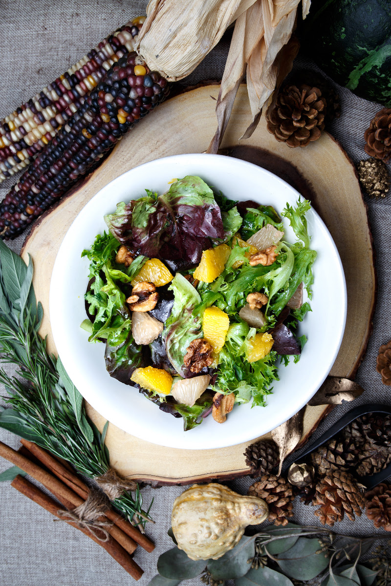Mesclun Greens, Candied Walnuts, Citrus, Sherry vinaigrette