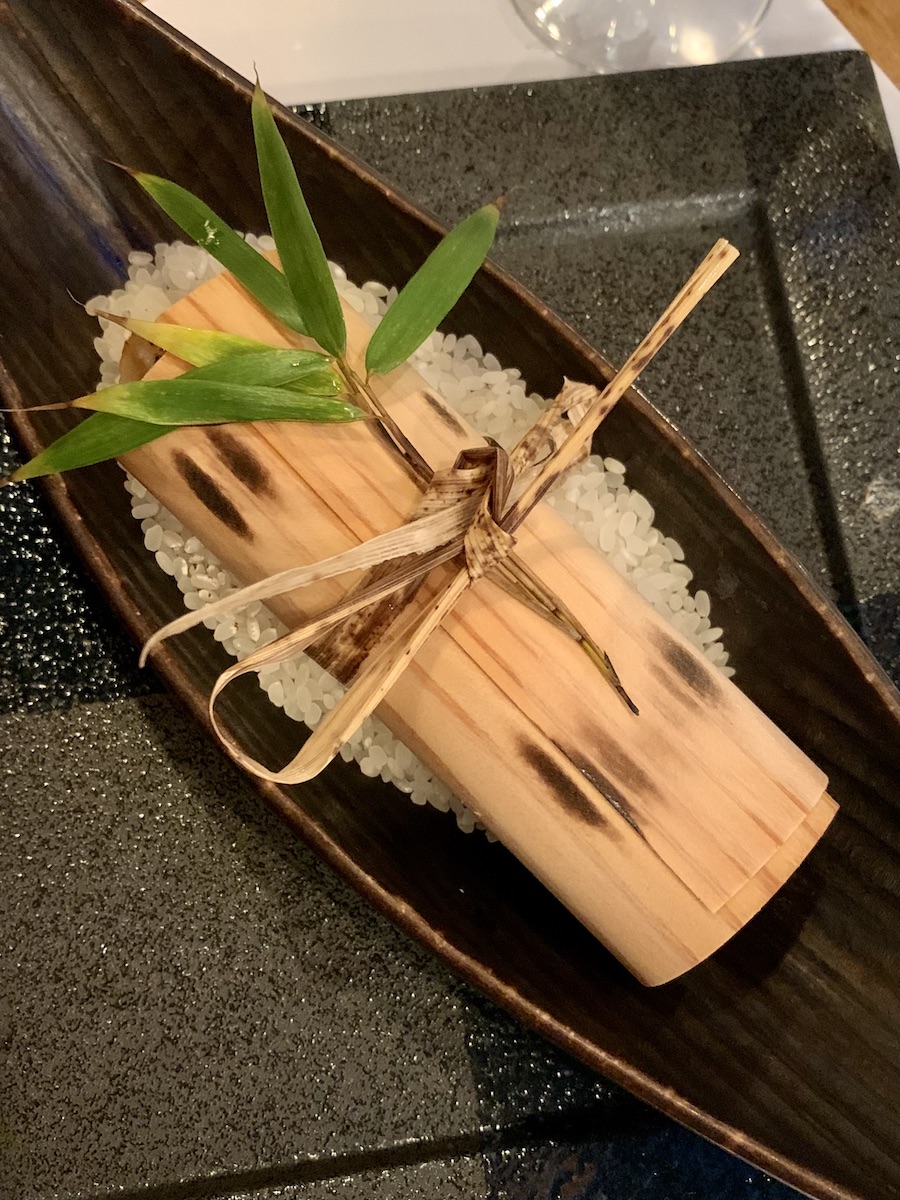 - Matsutake (BC pine mushroom) binchotan charcoal grilled and soaked in dashi.
