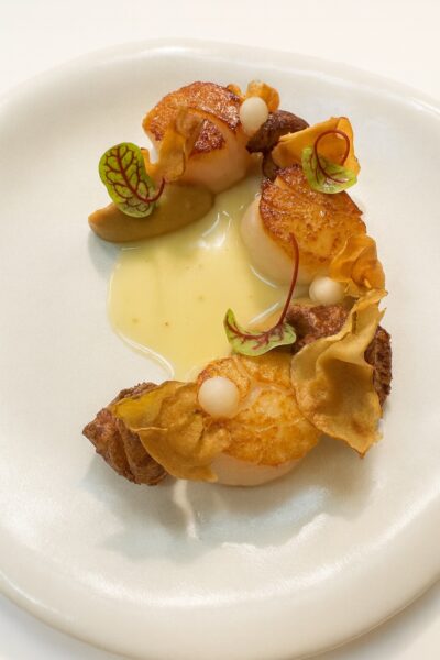 caramelized sunchoke & purée, beurre blanc & Okanagan pear