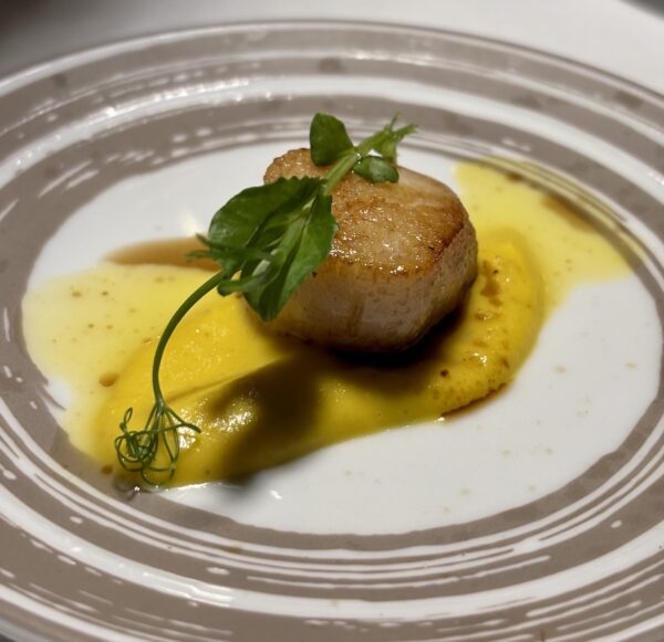 Out of this world taste of the pureé and the perfectly cooked scallop. Fresh and delicious, such a delicacy having fresh seafood available year round.