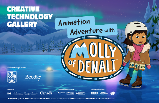 This thought-provoking gallery is co-presented by Beedie and RBC, supported by Pacific Economic Development Canada and developed with the participation of Creative BC and the British Columbia Arts Council. Animation Adventure with Molly of DenaliTM was created by Science World in collaboration with DigiBC, GBH Kids and Atomic Cartoons.
