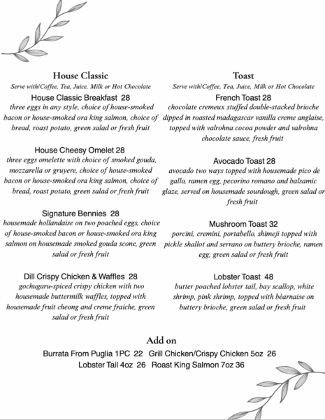 House of Dawn is serving up a brand new brunch menu, available Wednesdays through Sundays from 11 a.m. to 3 p.m.. Guests can enjoy classics like Eggs Benedict, Crispy Chicken & Waffles, and French Toast, alongside handhelds such as the Dry Aged Breakfast Burger, Brisket Cheese Melt, Lobster Roll, and Kobe Striploin Sandwich.