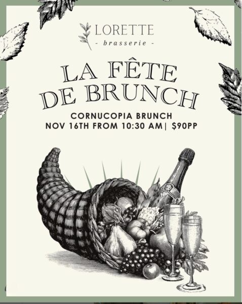 On Sunday, November 16 from 10:30 a.m. to 1 p.m., Lorette Brasserie will host La Fête du Brunch, a festive brunch experience featuring family-style starters and a selection of refined entrées. Guests can choose from three Eggs Benedicts, Croque Madame, Brioche French Toast, and other elevated brunch dishes, accompanied by signature cocktails, sparkling wine, and seasonal drinks designed to keep the celebration flowing.