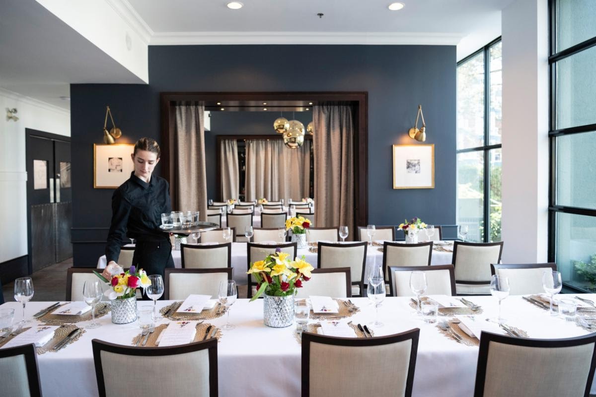 Also available for private and corporate events are a Buffet Menu (minimum 30 guests) for $209 per guest plus tax and gratuity as part of an Iron Chef experience or Buffet Only for $109 per guest plus tax and gratuity that includes selections such as Caesar Salad (Romaine, croutons, Parmesan), Grilled Vegetable Salad (Luciano kale, farro, herbs), Charred Broccolini (almond crunch, Parmesan), Roasted Baby Potatoes (fresh herbs, crème fraiche),Casarecce (Pomodoro sauce, Parmesan, parsley), Oven-Roasted Ling Cod (beurre blanc, fresh herbs), Herb-Crusted Sirloin (grainy mustard, herbs, red wine jus) and a Chef’s Selection of Seasonal Desserts as a finishing course.