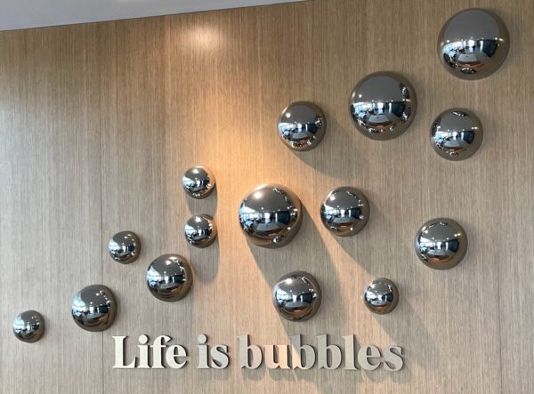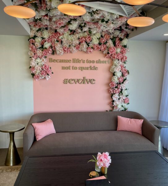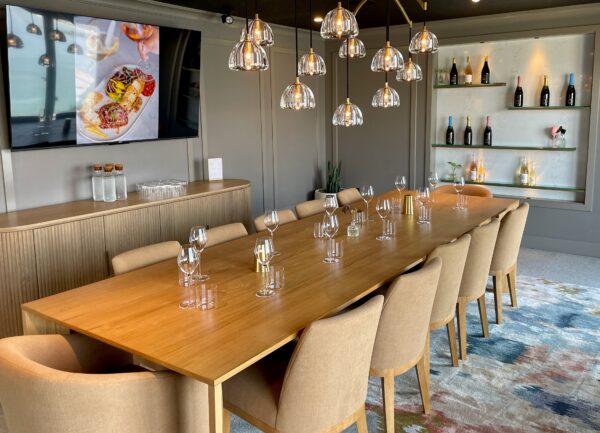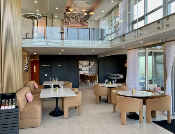 The modern, chic tasting room was designed to impress. Every detail celebrates bubbles–from the sparkling décor to the playful energy that runs through the space.