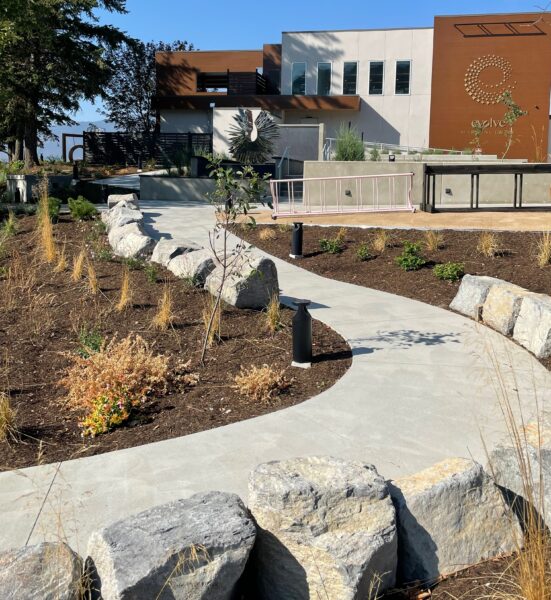 Perched above the Kettle Valley Rail Trail, Evolve was designed to complement its Mediterranean-like surroundings, featuring a stunning patio with sweeping views of Penticton and Summerland’s Giant’s Head Mountain across the lake.