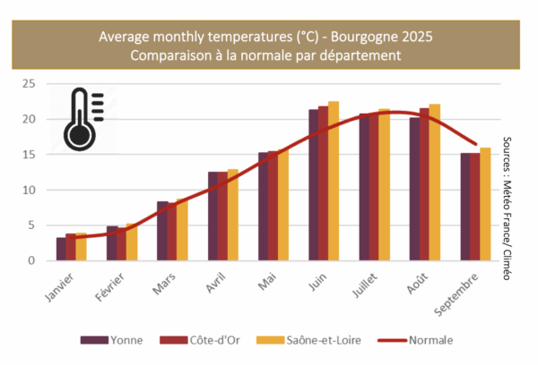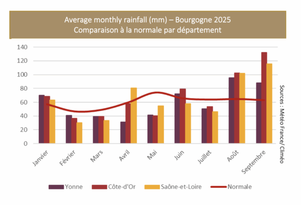 Rainfall distribution across Bourgogne was extremely uneven, creating significant disparities between parcels: those receiving adequate rain continued ripening smoothly, while others, deprived of moisture, stalled under stress. Between early July and early August, some areas saw as much as 15 to 20 mm of rain, while others received barely 3 mm.