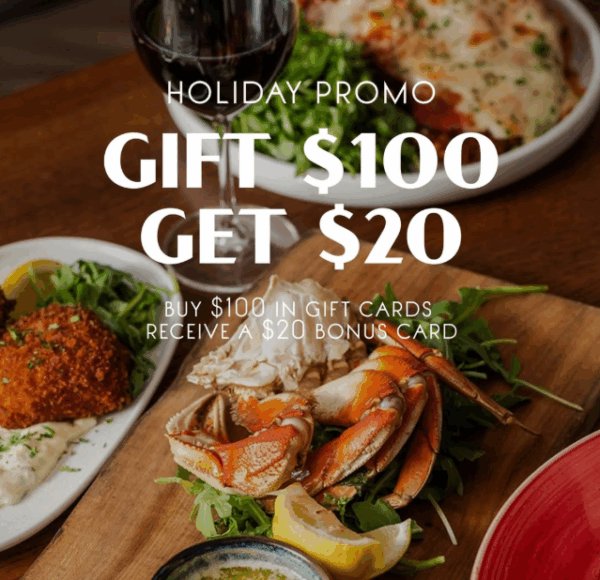 To celebrate all the moments we’ve shared this year, our annual Gift of Hospitality offer is back. From November 1 to December 15, when you purchase $100 or more in gift cards at any Moments Hospitality Collective location, you’ll receive a $20 Promotional Gift Card to enjoy in the new year.