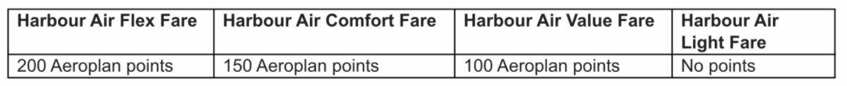 Starting today, Aeroplan Members can earn points on eligible fares flown on scheduled Harbour Air flights. A fixed number of Aeroplan points are available to be earned based on the fare class flown by the Aeroplan Member, as reflected in the following points earning system: