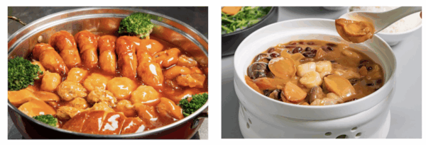 The Holiday Poon Choy features fresh abalone, dried scallops, goose web, sea cucumber, tiger prawns, shiitake mushrooms, pork knuckle, soy-sauce chicken, and dace paste, layered generously and finished with the restaurant’s rich, house-made abalone sauce.