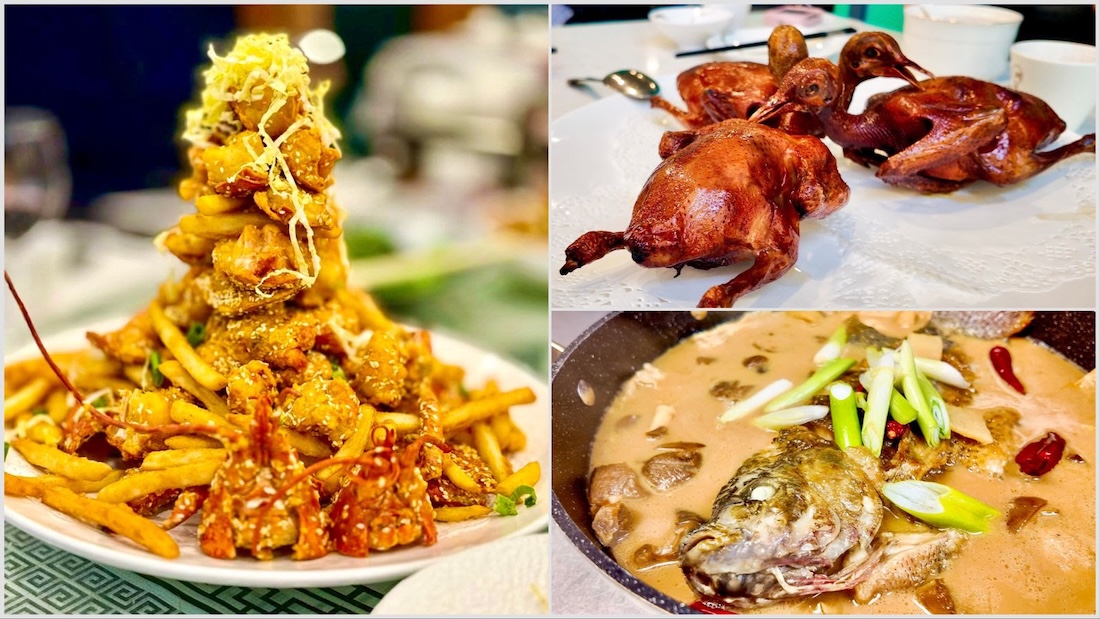 Seasonal favourites and anniversary dishes include the Crispy Shunde Squab (脆皮乳鴿), a classic Cantonese delicacy now available as a weekday lunch special for $26 (Mon–Fri; regular price $43), the festive Lobster Tree (龍蝦樹) featuring 2.5-lb lobsters (market price), and the winter classic Fish & Lamb Umami Stew (魚羊鮮), a warming Shunde specialty available at a holiday price of $108 (regular price $128).