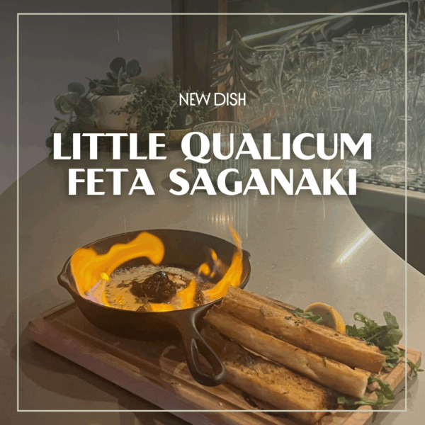 We’re partnering with out neighbours at Little Qualicum Cheeseworks to bring you this tableside fire experience: The Little Qualicum Feta Saganaki! This new dish is an elevated Greek appetizer featuring Little Qualicum Feta (high-quality, salty cheese) that has been pan-fried to create a crispy crust and a warm, soft interior. It is served with a side of chewy focaccia, perfect for scooping up the warm cheese and flavourful juices!