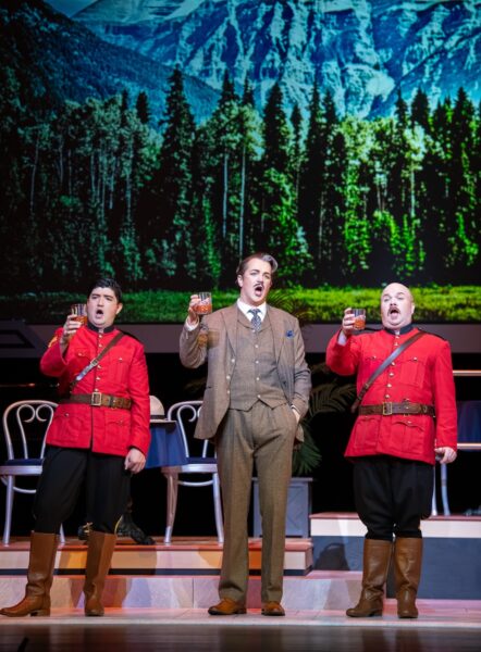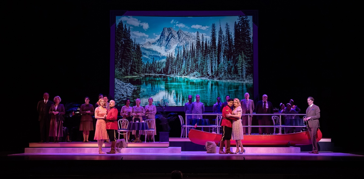 Vancouver Opera’s new Così fan tutte is a travel‑poster daydream that opens in a 1930s luxury hotel lobby lounge complete with Rockies vistas and vintage postcard backdrops. We meet two sisters, Fiordiligi (Jamie Groote in her stellar company debut) and Dorabella (Alex Hetherington), and two upright Mounties, Ferrando (Owen McCausland) and Guglielmo (Clarence Frazer), in tip to toe Royal Canadian Mounted Police uniforms (most certainly as Mozart always intended) who naturally, fall madly and inseparably in love all within the first eight minutes of the show.