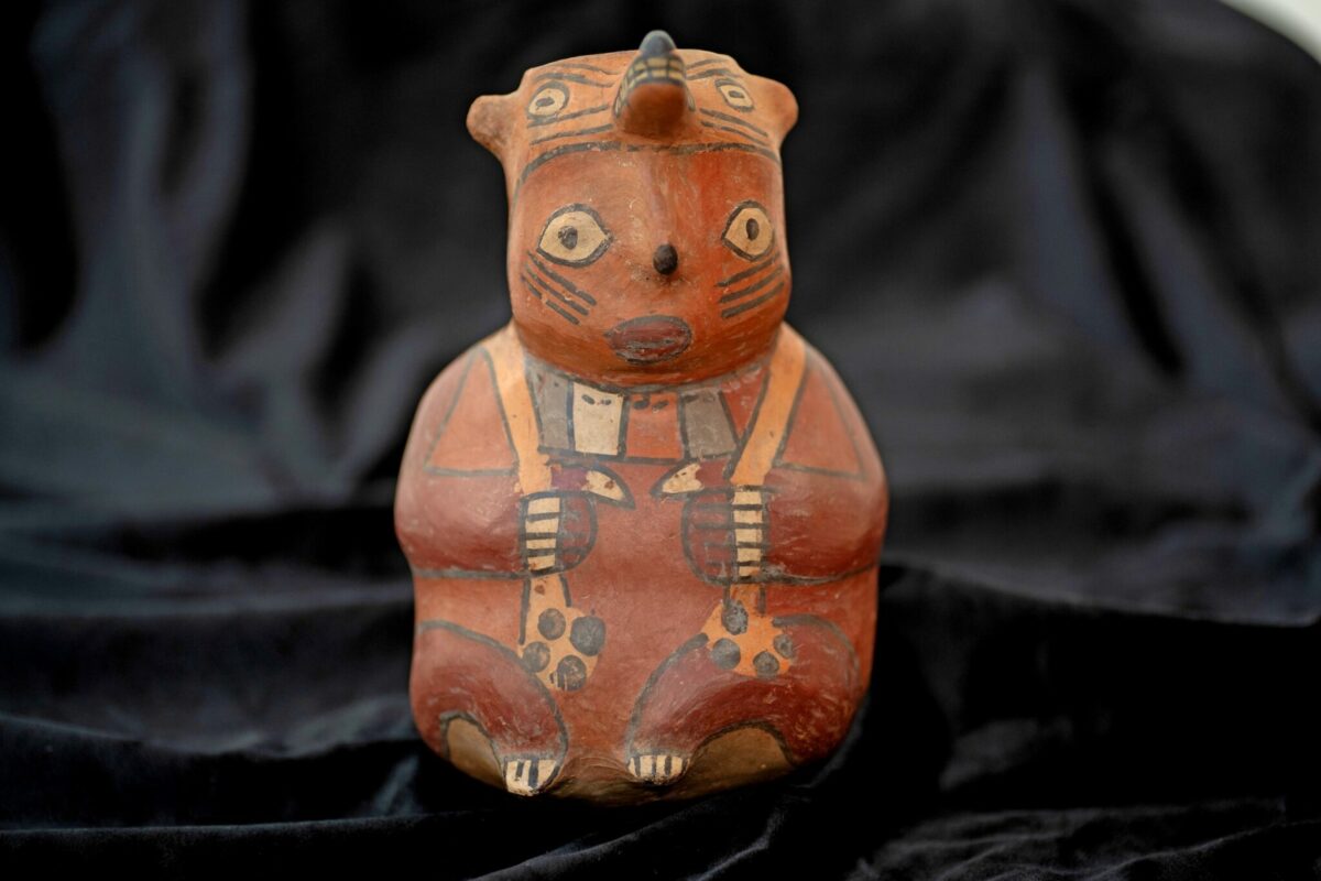Featlure image: Fox vessel. Vessel. Peru: Ica, Nasca, 100 B.C.E.-800 C.E. MOA Collections 2990/113. Photo by Joshua Doherty.