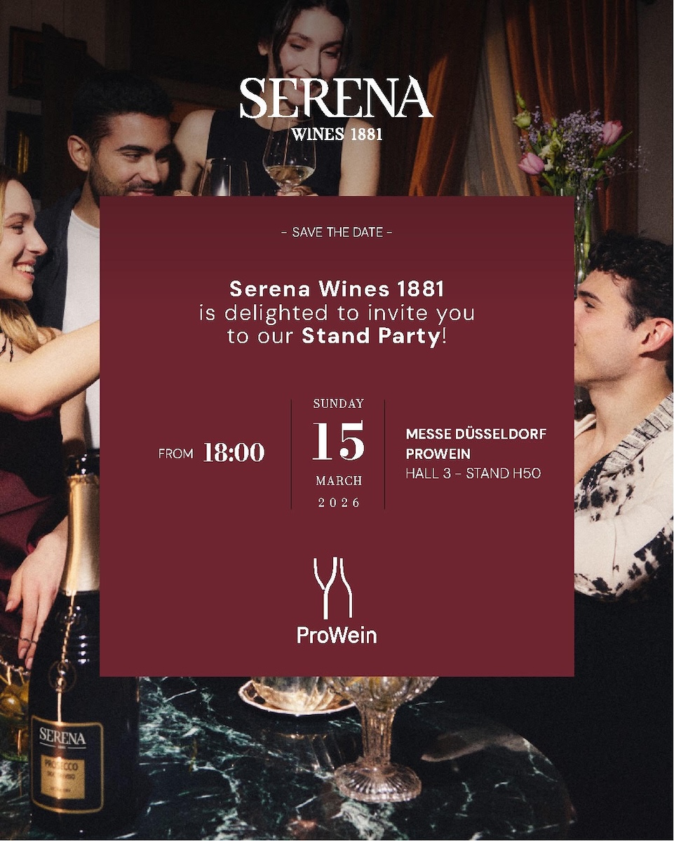 Serena Wines 1881, one of the most established names in the Prosecco DOC and DOCG production, will return to ProWein in Düsseldorf from March 15 to 17, 2026, confirming its presence at one of the most internationally recognized trade fairs for the wine sector.