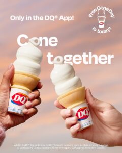 Thursday, March 19th is Free Cone Day, where DQ® Rewards members can receive one FREE small Vanilla cone by redeeming the deal in the DQ Mobile App*.