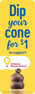 But the fun doesn’t stop there: At participating stores, fans can also opt into ‘Dip it for Kids’ by adding any dip to their cone for $1. All proceeds go directly to local children’s hospitals across Canada through the Children’s Miracle Network.