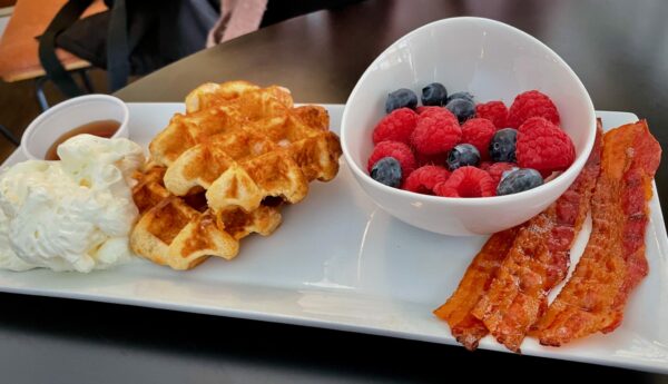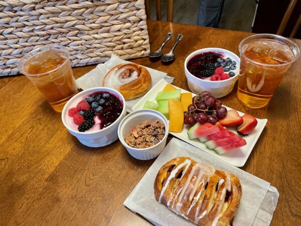 On our final day, we ordered a breakfast basket delivered to the room. It was generous to say the least: fruit, yogourt, granola, pastries, and juice, with more than enough for two adults.
