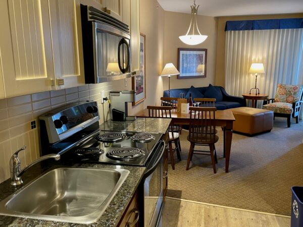 It had everything you could need for a comfortable stay: a full kitchen, fireplace, private patio, two televisions, a soaker tub, and a separate shower. It struck a nice balance between hotel luxury and condo convenience.